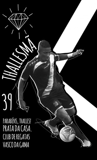 Uma das maiores promessas do Vasco nos últimos tempos, Thalles completa 19 anos neste domingo. E o clube fez questão de parabenizá-lo em seu site oficial com uma pequena homenagem. Além de um texto que destaca sua formação e seus feitos até aqui, uma montagem com o atacante - incluindo o desenho de um diamante - também foi produzida.